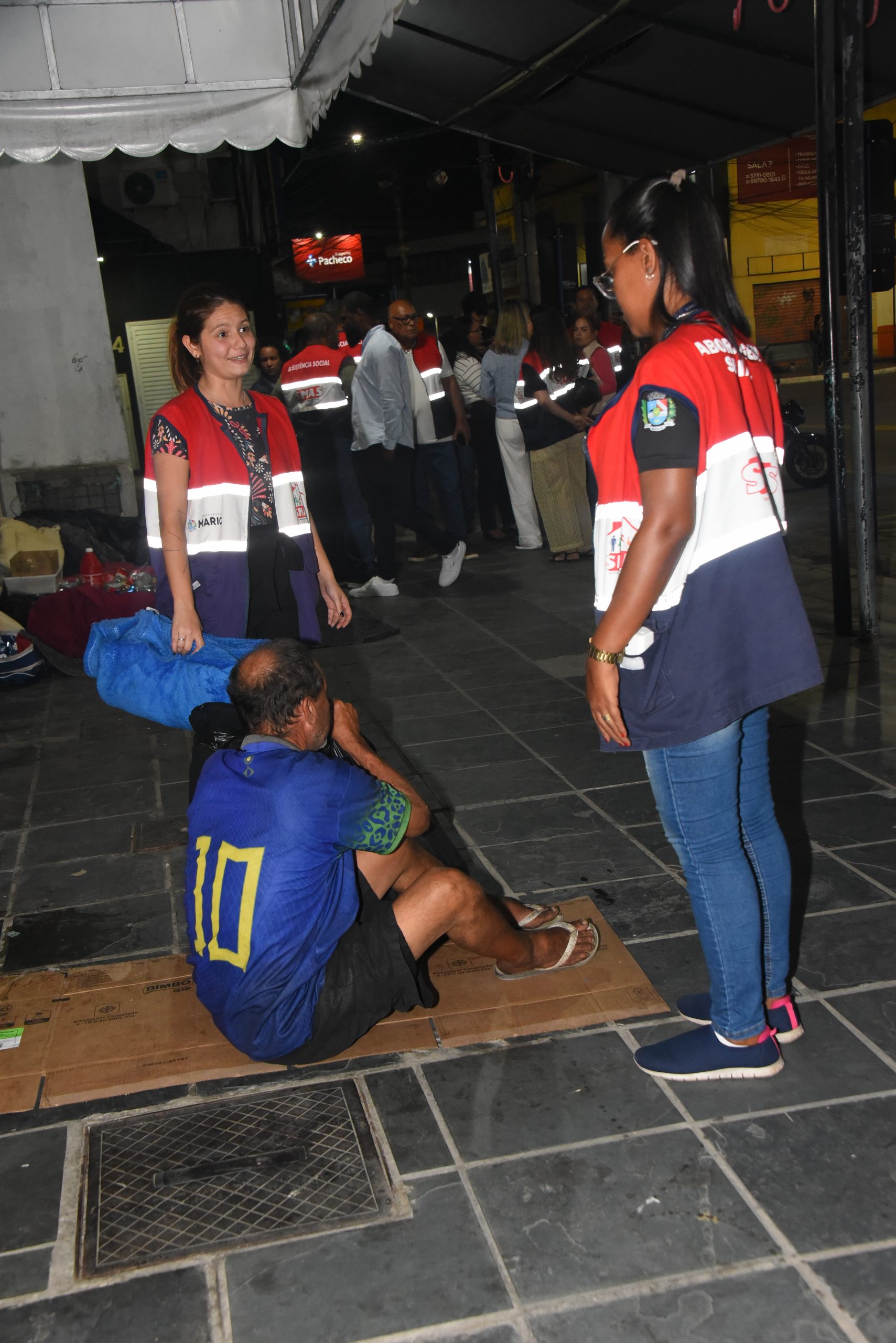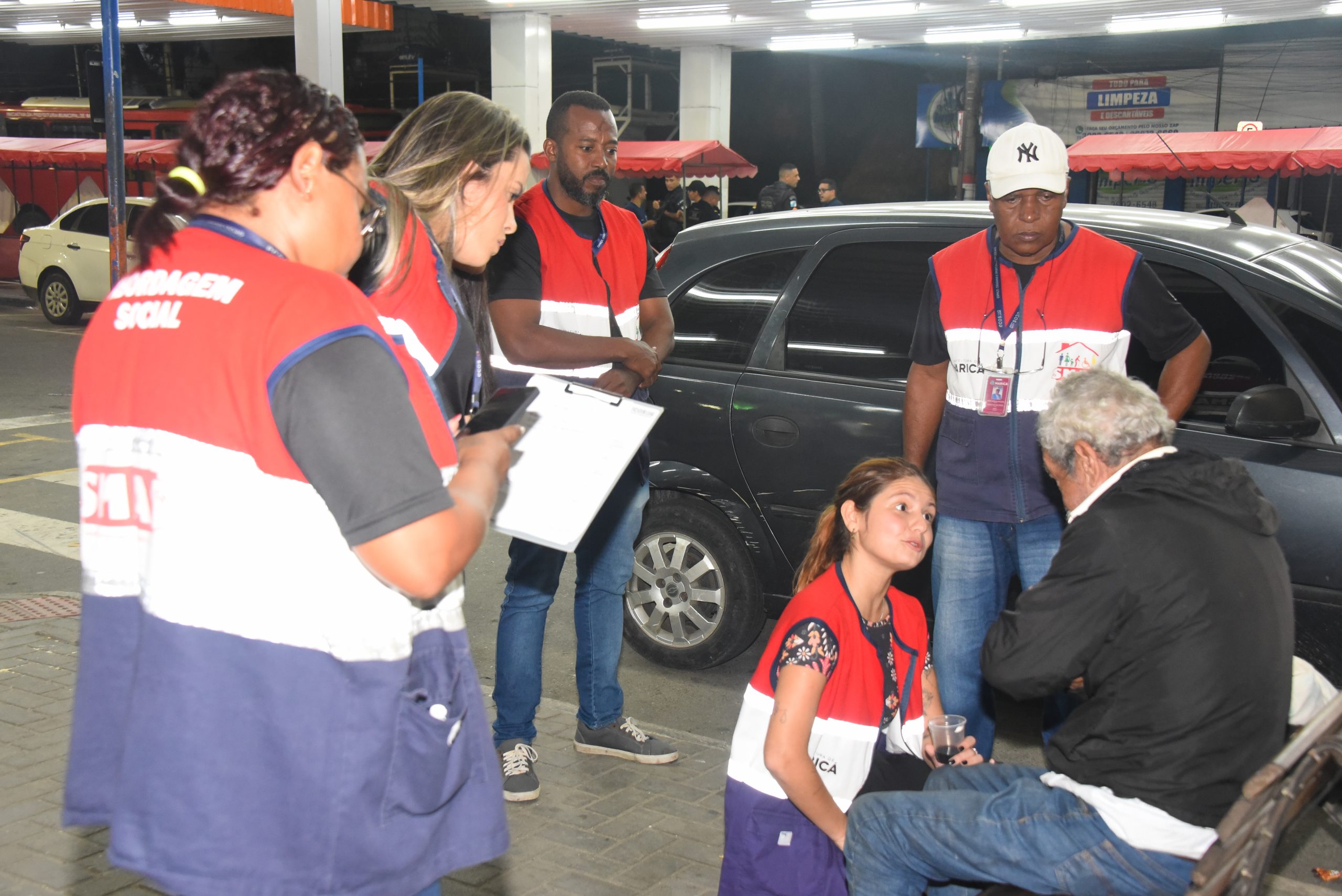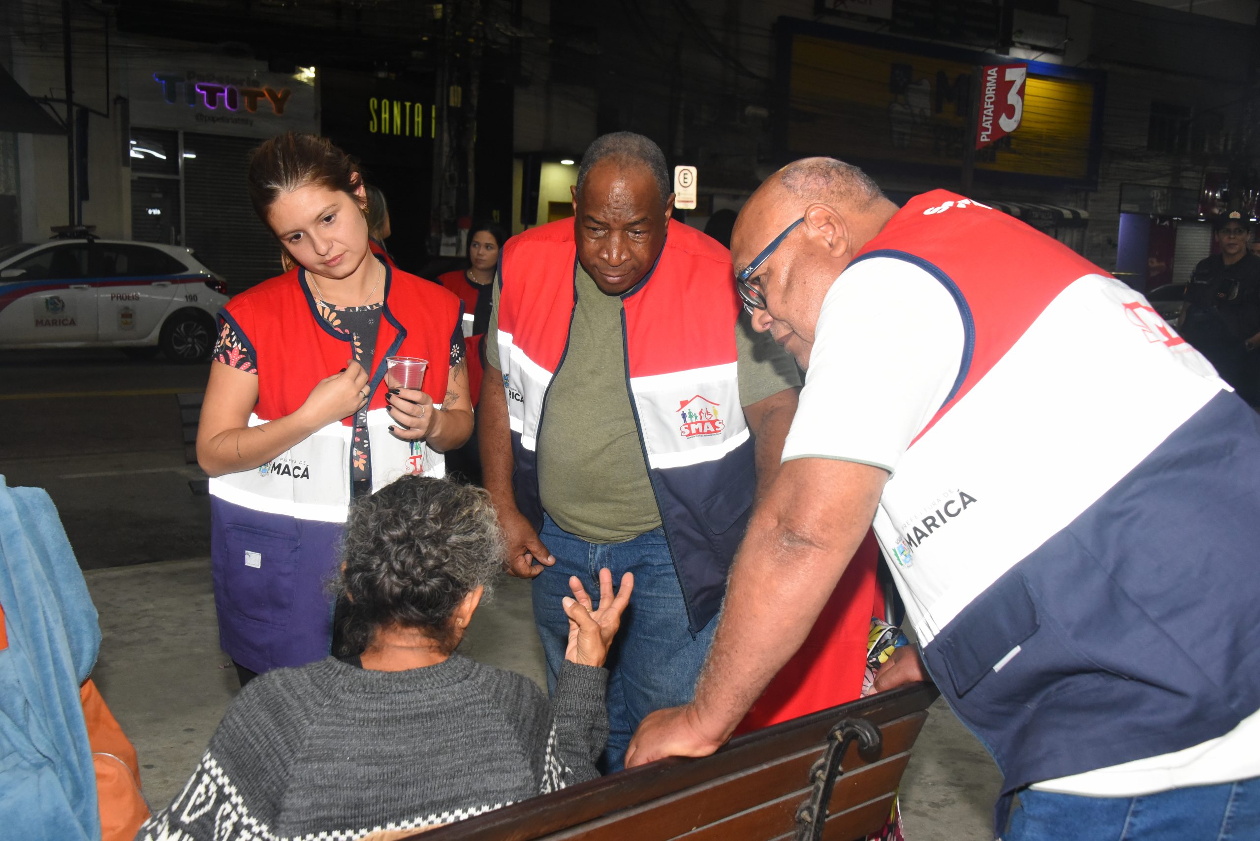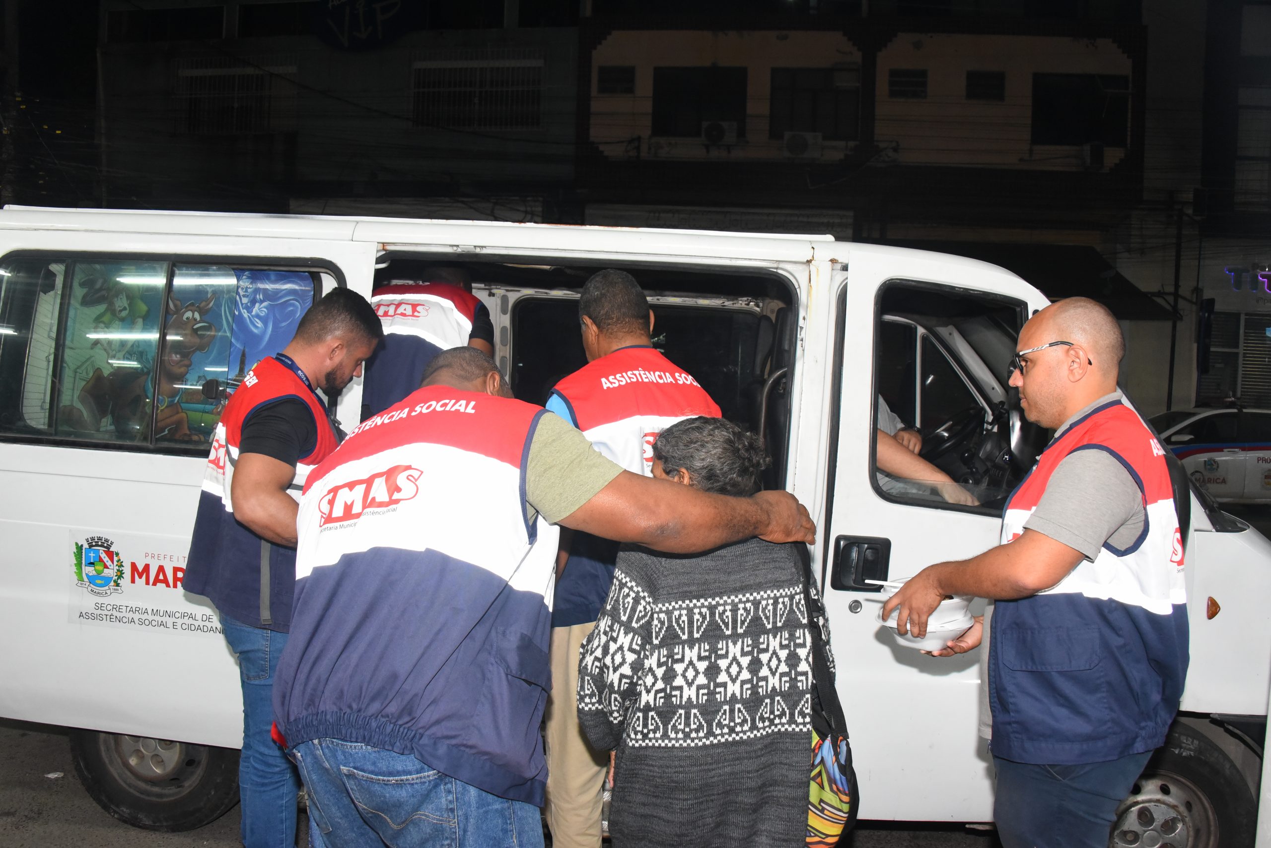 A Prefeitura de Maricá, por meio da Secretaria de Assistência Social e Cidadania, promoveu na noite de segunda-feira (05/05) mais uma ação de abordagem a pessoas em situação de rua no Centro. Durante a iniciativa, 27 pessoas foram encaminhadas para Casa Abrigo Ernani Gomes Duarte, em Araçatiba. Foram realizadas orientações sobre acesso a serviços socioassistenciais, além do apoio humanizado para reinserção social. A ação contou com parceria das secretarias de Trabalho e Emprego, Habitação, Pessoas com Deficiência, Segurança Cidadã e da Polícia Militar.