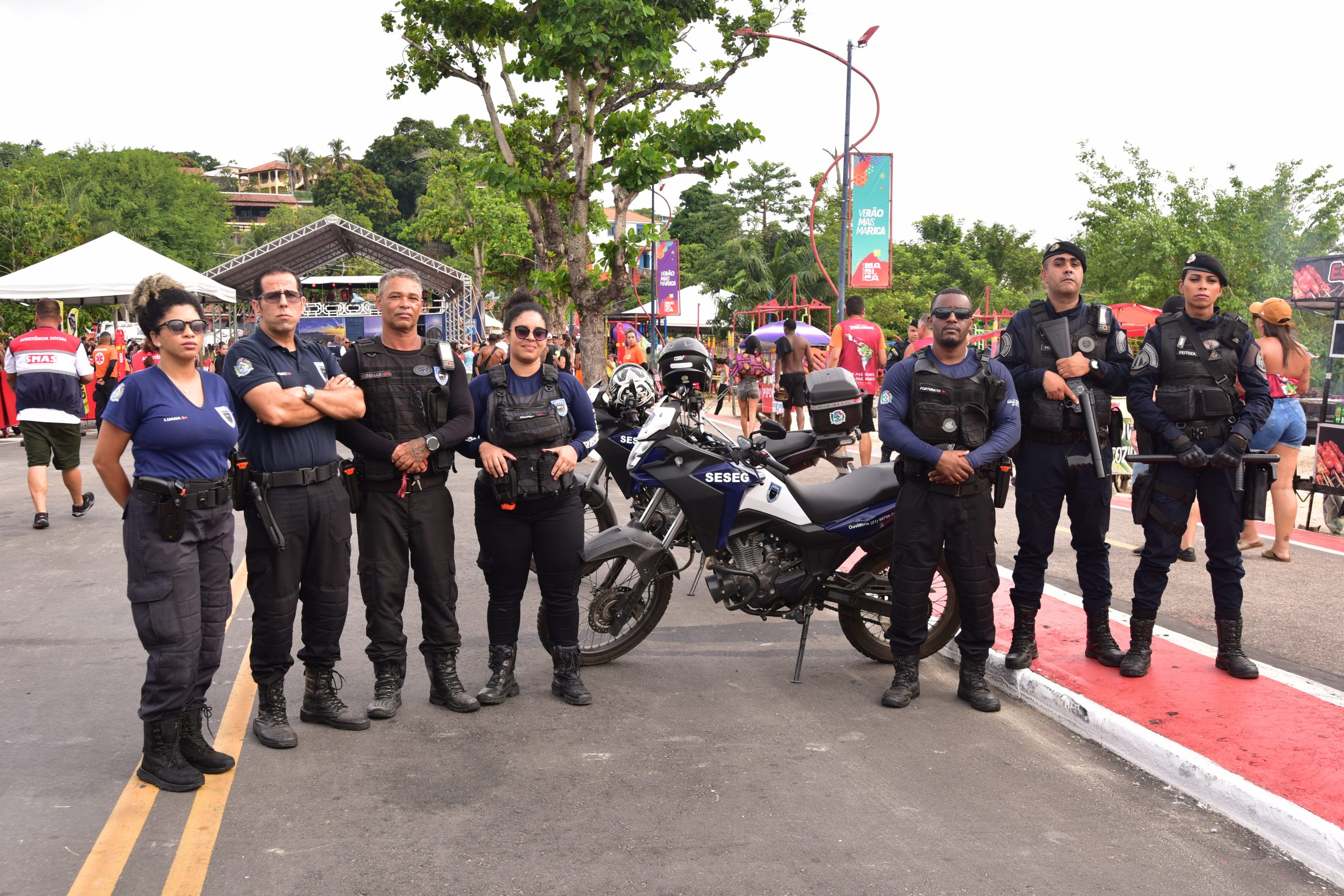 A programação do Carnaval em Maricá conta com monitoramento das forças de segurança do município. Agentes da Guarda Municipal atuam nos circuitos, com apoio da Polícia Militar por meio do Programa Estadual de Integração na Segurança (Proeis).