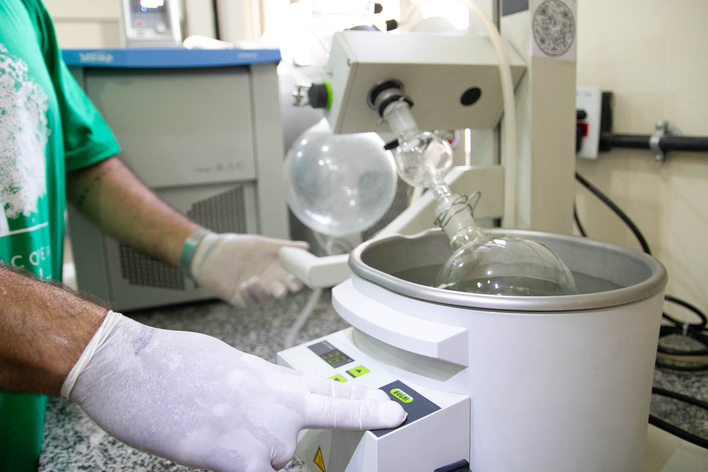 “Todas medidas com paquímetro, no comprimento e espessura. No campo temos mais de 200 genótipos (materiais genéticos diferentes) para seleção das que se mostram melhores para esse uso”, diz o professor de bioquímica Marco Andre Alves de Souza, coordenador de óleos essenciais do Farmacopeia Mari’ká.