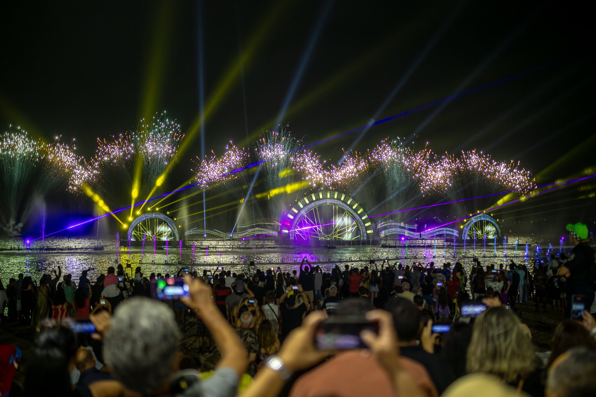 Em seguida, o público acompanhou o “Águas Dançantes”, espetáculo que transformou a lagoa em cenário cênico com combinações de luz, música, jatos d’água e efeitos visuais. Moradora do Parque Nanci, a professora Carla Menezes contou que todo ano assiste ao espetáculo, mas que ficou impactada com o show deste ano.