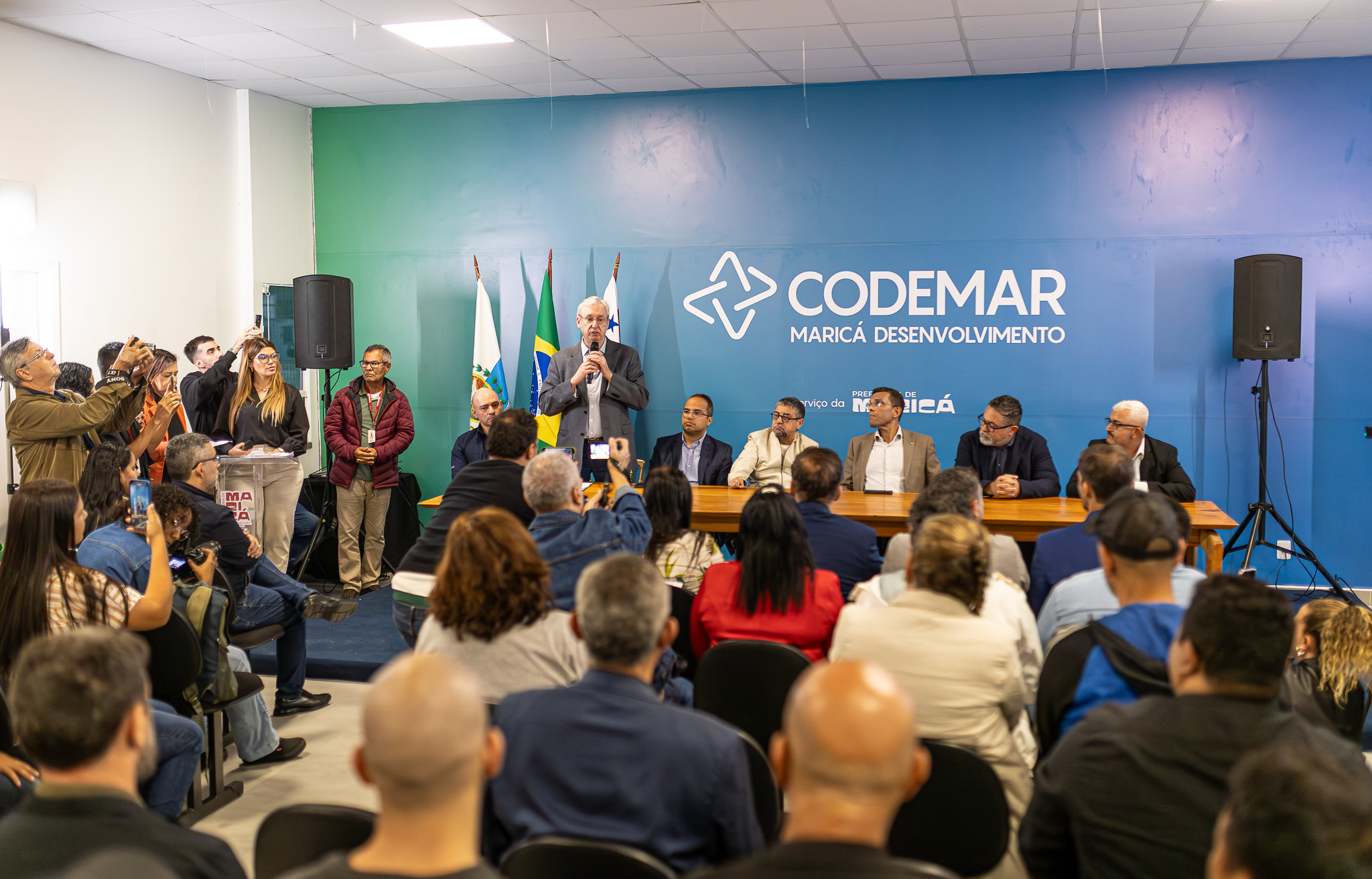 A Prefeitura de Maricá, por meio da Companhia de Desenvolvimento de Maricá (Codemar), formalizou na manhã desta segunda-feira (11/08) a assinatura do termo de cooperação técnica com o Departamento Nacional de Infraestrutura de Transportes (DNIT), marcando o início do projeto “Vermelhinho das Águas” – o primeiro sistema municipal aquaviário gratuito de passageiros e cargas da cidade. A cerimônia ocorreu na sede da Codemar, onde também foi apresentada a proposta técnica que prevê a implantação de estações aquaviárias em diversos bairros.