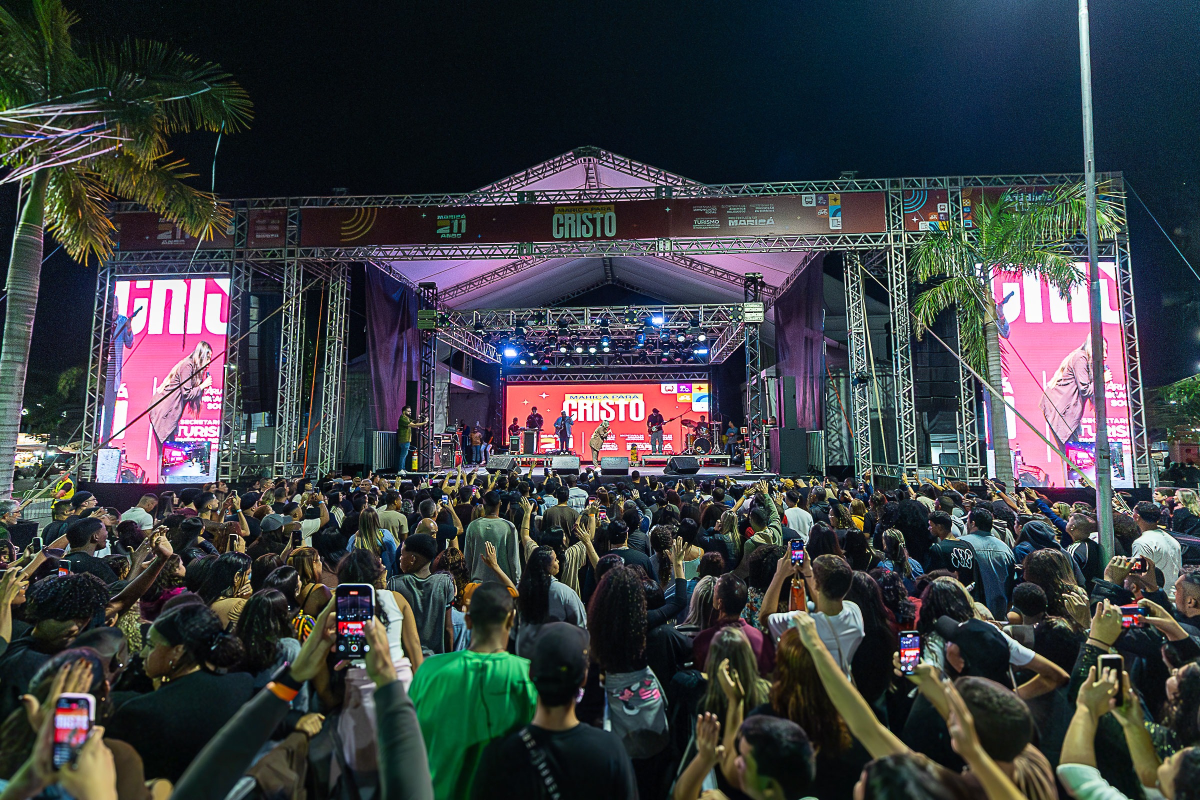 A Prefeitura de Maricá, por meio da Secretaria de Assuntos Religiosos, promoveu neste sábado (24/05), Dia Municipal do Evangélico, a 20ª edição do “Maricá para Cristo”. Em uma noite de muito louvor e adoração, seis grandes nomes da música gospel subiram no palco montado na Praça Orlando de Barros Pimentel, no Centro. Entre as atrações principais estavam Fabrício Toledo, Maria Pita, Ana Maura, Gabriela Rocha, Banda Essência e Midian Lima.