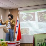 A iniciativa, que simbolizou o Dia do Nutricionista, celebrado em 31 de agosto, teve início com apresentação cultural e a mesa de abertura “Dos espinhos aos frutos, do campo à mesa”, mediada por Pryscila Fernandes Campino Miranda. Participaram Fernanda Garcia (Inova Agroecologia), Maria Vitória Santos da Silva (Coletivo Aquilombar na Lagoa), Iraci Para Poty Nunes de Oliveira Menegatti Soares (Aldeia Mata Verde Bonita – Tekoa Ka’Aguy Ovy Porã) e Andrei Bentes (Cooperativa Manada Agroecológica), que discutiram práticas de produção, agroecologia e a valorização da cultura alimentar de base comunitária.