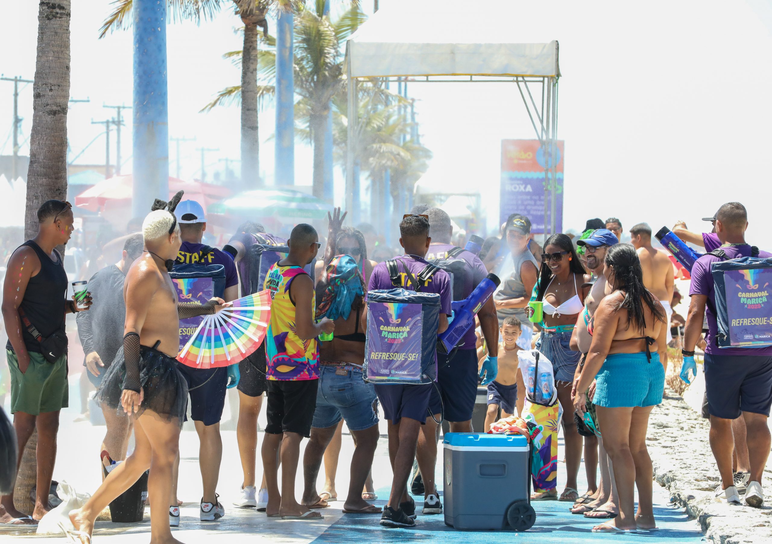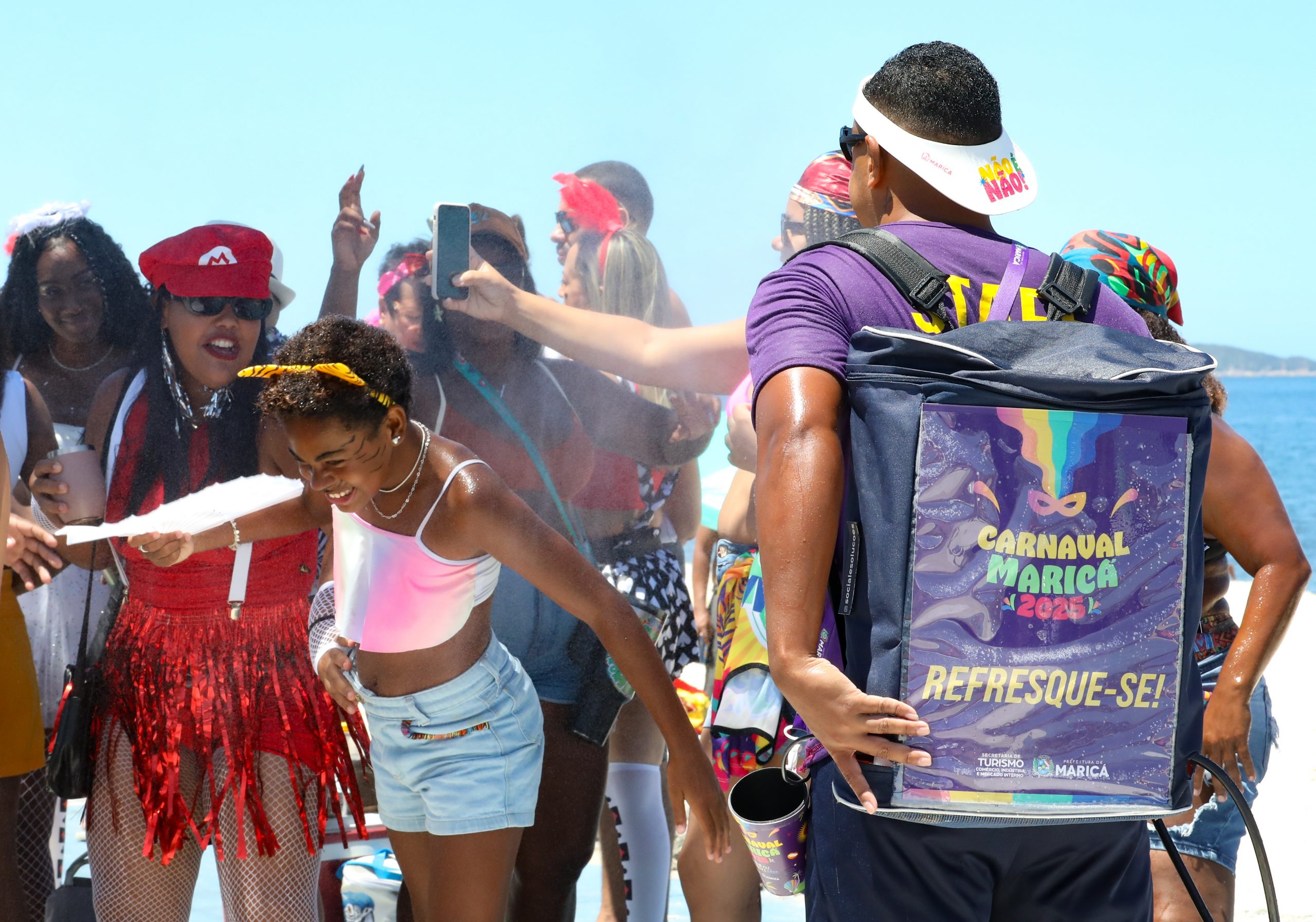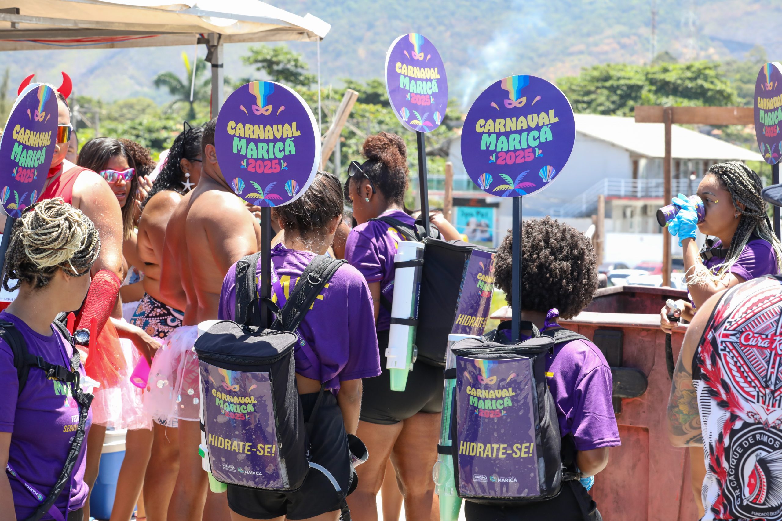 Embalados ao som de axé, samba e pop, os foliões não se deixaram desanimar pelo calor. Para minimizar os efeitos do sol quente, a Prefeitura de Maricá realizou ações durante o bloco junto aos participantes. Agentes realizavam a distribuição de protetor solar e, também, vaporização de água.