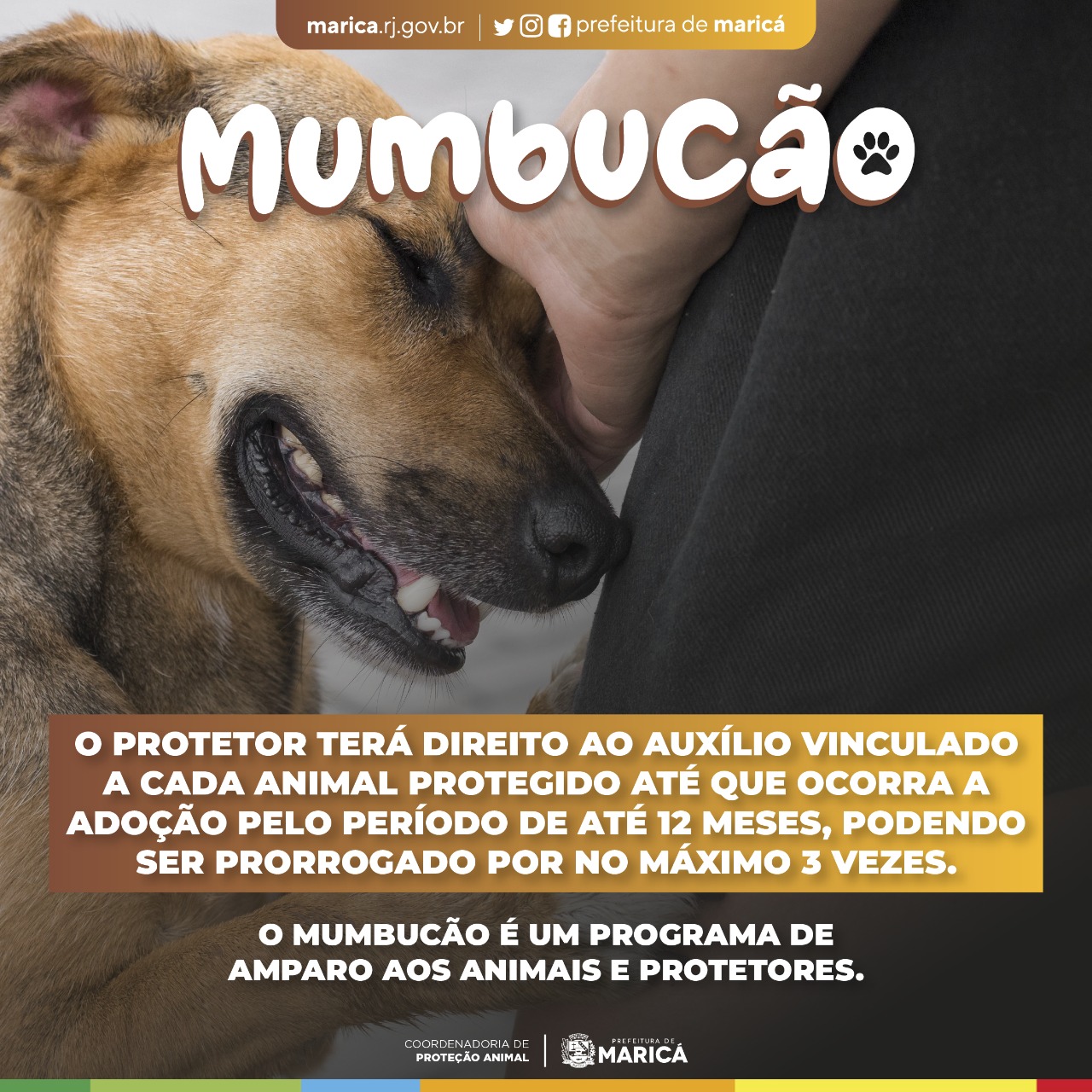O Prefeito de Maricá, Fabiano Horta, enviou na quarta-feira (07/12) mensagem à Câmara de Vereadores com projeto de criação do “Mumbucão”, benefício para protetores e adotantes de cães e gatos nas campanhas promovidas pela Coordenadoria de Proteção Animal (Cepa) do município, no valor que varia de 70 a 130 mumbucas, dependendo do porte do animal, por até um ano. No caso dos adotantes, apenas os cadastrados no CadÚnico terão direito ao benefício.