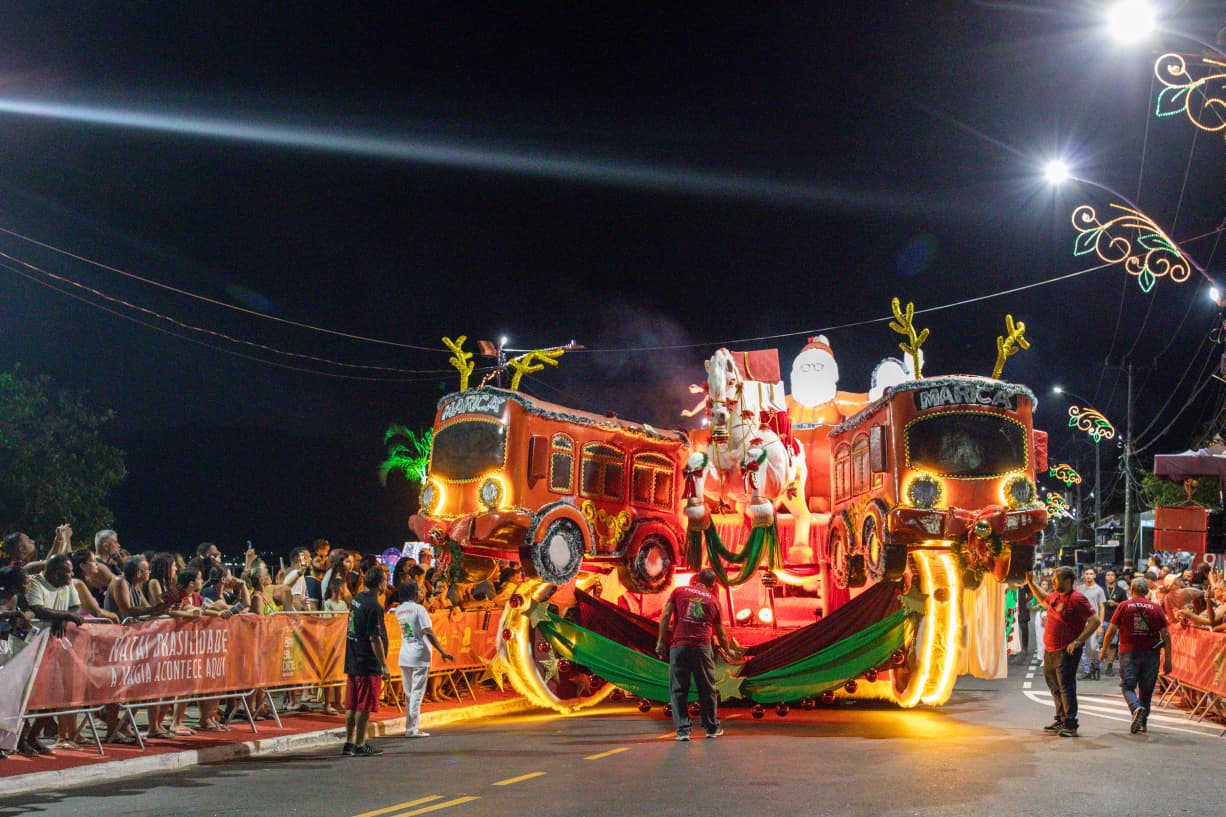 Em seguida, aconteceu a Parada de Natal, espetáculo concebido pelo carnavalesco e diretor artístico Milton Cunha. Com seis carros alegóricos e cerca de 600 moradores envolvidos na encenação, a parada apresentou uma releitura do Natal inspirada em elementos da cultura brasileira e nas tradições maricaenses, reforçando o caráter comunitário e cultural do evento.
