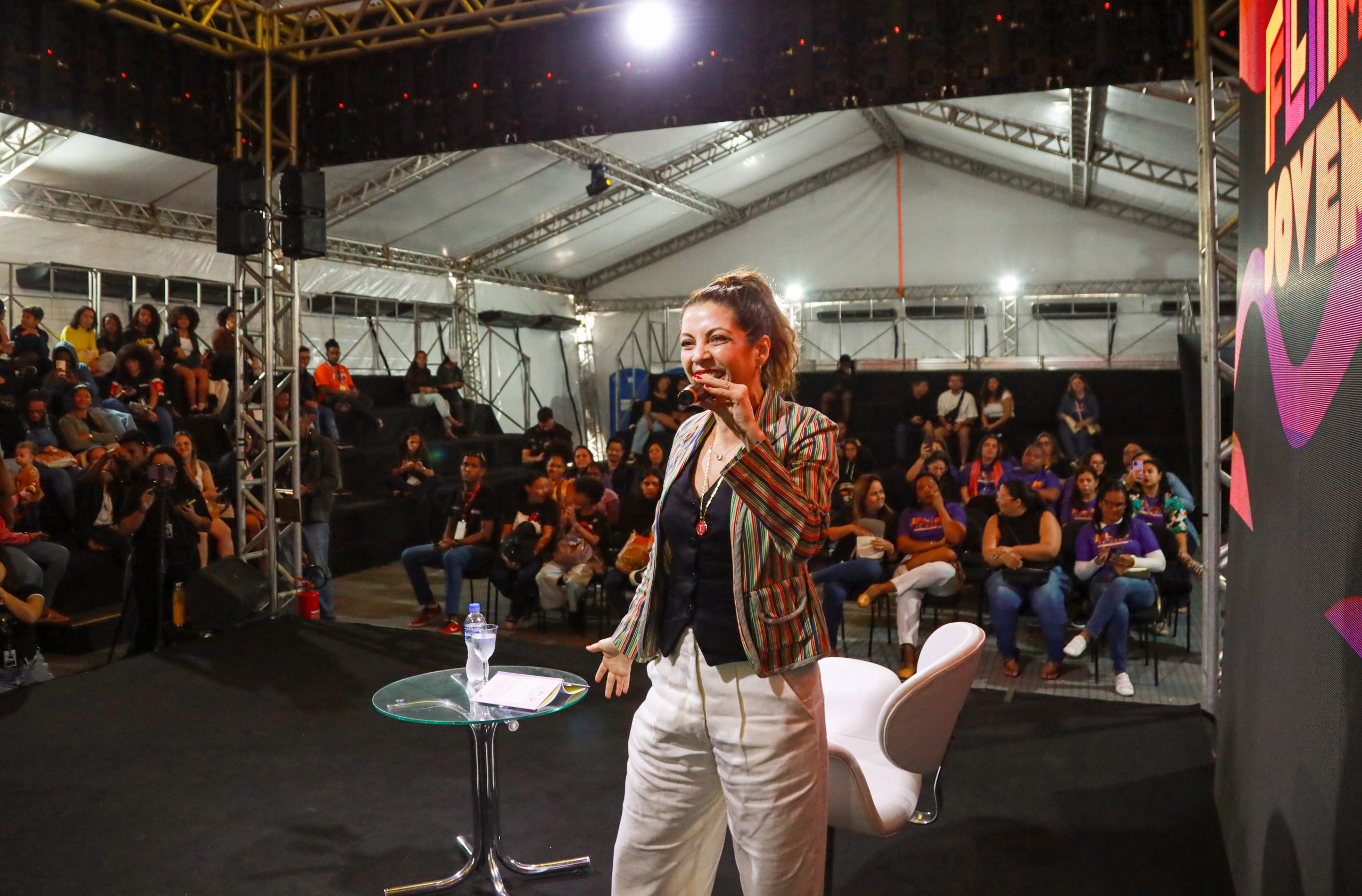 A tenda FLIM Jovem também recebeu apresentações interativas para adolescentes e adultos. Pela manhã, aconteceu atividade de Cordel e Lambe Lambe. A noite, a Secretaria de Políticas e Defesa dos Direitos das Mulheres promoveu uma intervenção poética. Com textos sobre feminismo e empoderamento feminino, ativistas falaram sobre as lutas por equidade entre homens e mulheres.