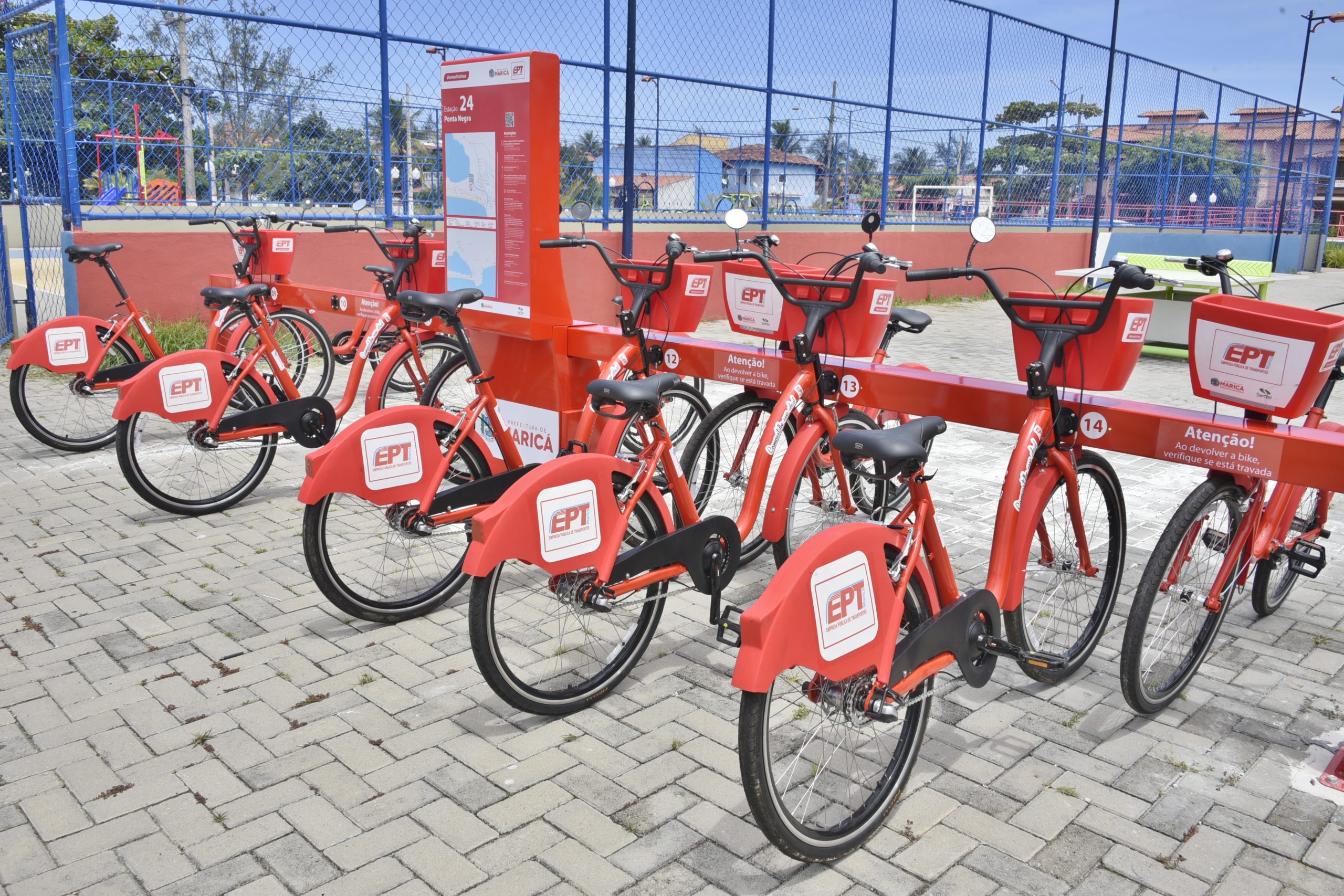 A Prefeitura de Maricá, por meio da Empresa Pública de Transportes (EPT), amplia o número de estações de bicicletas compartilhadas na cidade com a oferta de mais 30 vermelhinhas, a partir do próximo sábado (05/10), nos bairros Flamengo e Bambuí. Cada estação contará com 10 vermelhinhas na Arena Flamengo e 20 na Praça de Bambuí.