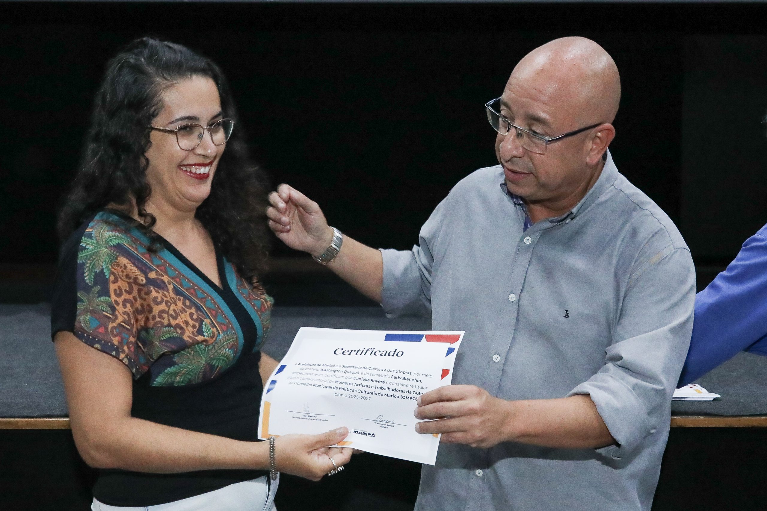 A Prefeitura de Maricá, por meio da Secretaria de Cultura e das Utopias, promoveu nesta terça-feira (10/02), no Cine Henfil, no Centro, a cerimônia de entrega de certificados aos novos membros do Conselho Municipal de Políticas Culturais de Maricá (CMPC). Ao todo, 18 conselheiros titulares e suplentes foram eleitos em dezembro, além dos representantes do poder público indicados por órgãos do governo municipal.