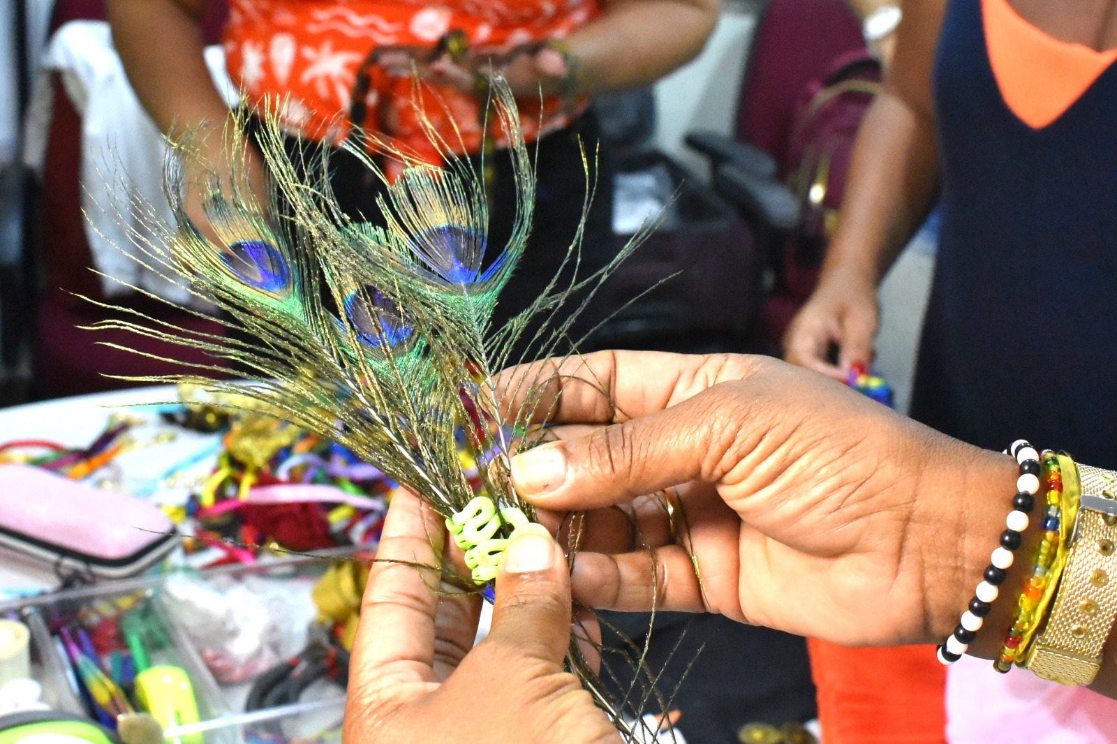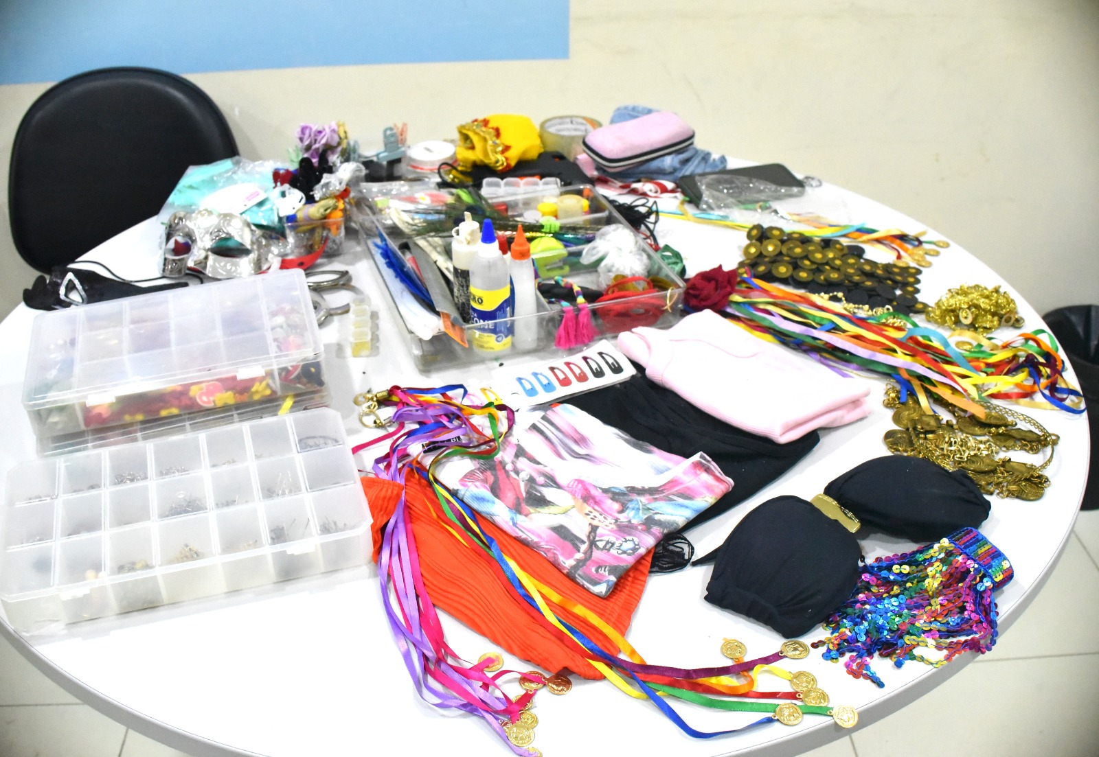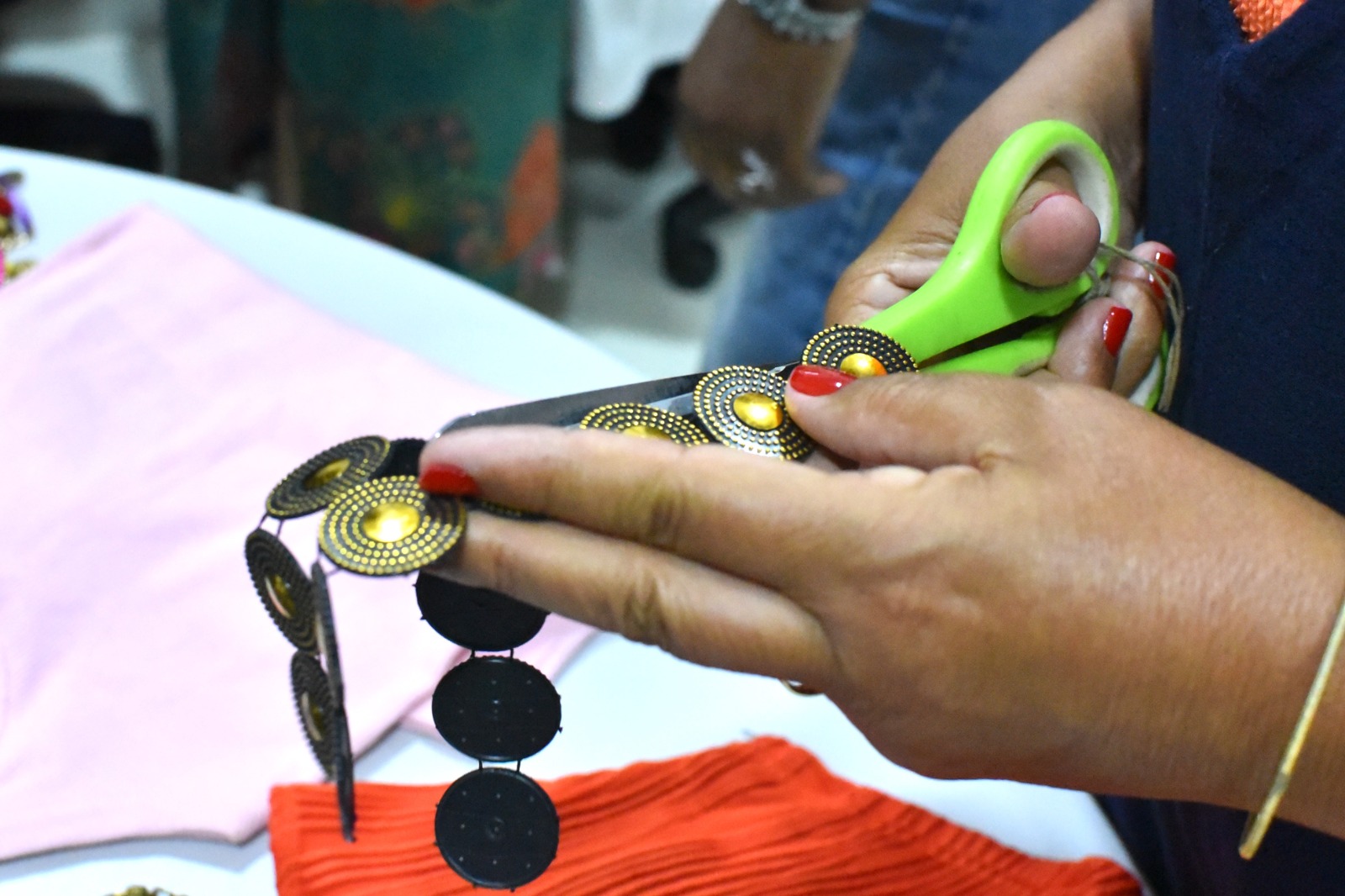 A oficina, coordenada por Janainah Morgado, recebeu doação voluntária dos materiais utilizados, por uma das assistidas, como lantejoulas, glitter, pedrarias, linhas, agulhas, cola e botões. Durante a atividade, as participantes produziram adereços de cabelo, brincos e peças customizadas a partir de roupas disponíveis no bazar da unidade, transformando os itens em criações voltadas para o Carnaval.