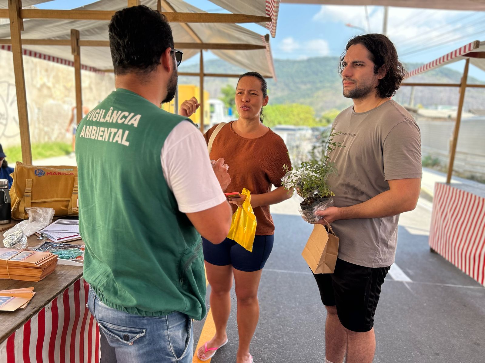 A Prefeitura de Maricá, por meio da Secretaria de Saúde, realizou no sábado (15/02) uma ação de prevenção à dengue e conscientização sobre a manipulação correta de alimentos na Feira da Agricultura Familiar, que ocorreu no Barroco, em Itaipuaçu. Durante a atividade, as equipes da Vigilância Ambiental apresentaram os cuidados que a população precisa adotar no dia a dia em suas casas e quintas, evitando o desenvolvimento do mosquito Aedes aegypti, que também transmite zika e chikungunya. Além disso, profissionais da Vigilância Sanitária orientaram os feirantes sobre as normas técnicas e boas práticas para o manuseio dos produtos.